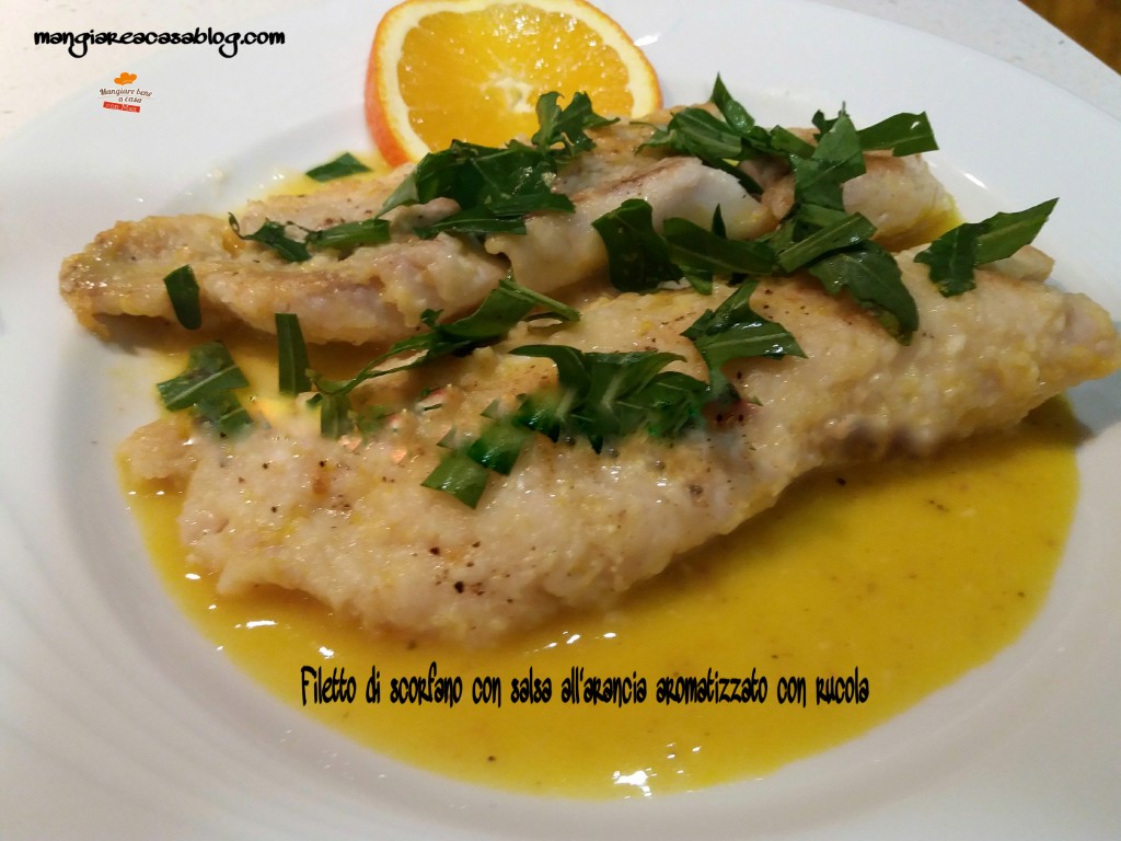 Cari lettori! Che dire? Io la considero una ricetta tipicamente invernale, che associa il sapore delicato dello scorfano, a quello dolciastro dell'arancia e che contrasta con il leggero sapore amarognolo della rucola. Tutto ciò dona al palato una combinazione di sapori ben distinti e molto gradevoli tra loro. Vi parlo un pò dello scorfano: un pesce che popola l'oceano Atlantico orientale ma lo si trova anche nei nostri mari, vive su fondi rocciosi e corallini e di solito a una profondità da 20 metri fino a 200 metri. Possiede delle appendici, sul mento e sotto l'occhio, molto carnose risetto a tutte le altre specie, testa massiccia e molto spinosa. Generalmente il colore è rosso vivo, ma può essere anche rosa, giallo, bruno e presenta una macchia nera al centro della pinna dorsale. La pesca avviene tra Maggio e Agosto/ Settembre, trascorre la maggior parte del suo tempo immobile aspettando che una preda gli passi davanti. Le sue carni sono molto apprezzate per la preparazione di brodo e zuppe di pesce, ingrediente obbligatorio per il famoso caciucco alla livornese e altre ricette delicate. Le sue spine dorsali e branchiali sono collegate a una ghiandola velenifera.