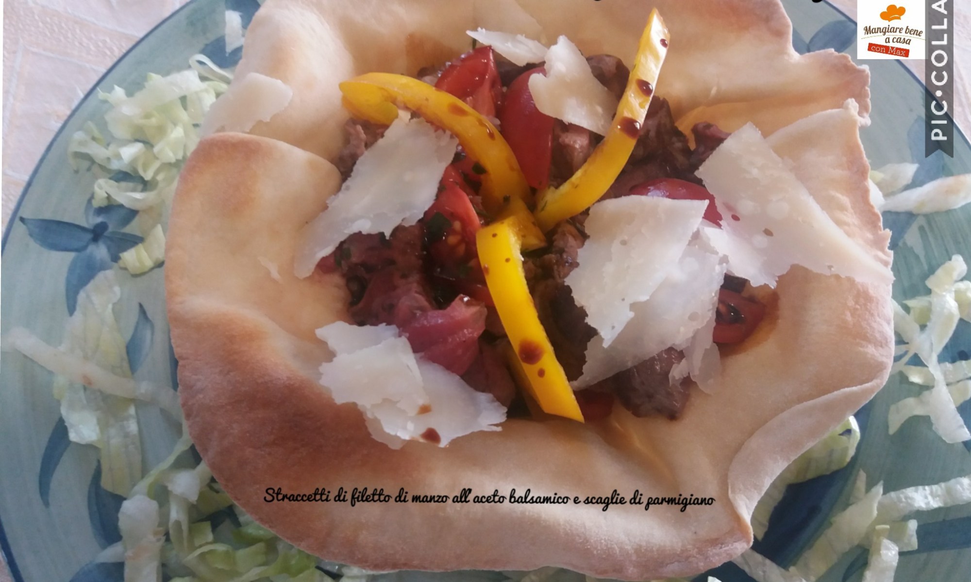 Gentilissimi amici, sono qui a proporvi un secondo piatto molto sfizioso e di qualità, insaporito con pomodorini datterino e aceto balsamico di Modena IGP, il tutto servito in una croccante ciotola realizzata con pasta pizza.