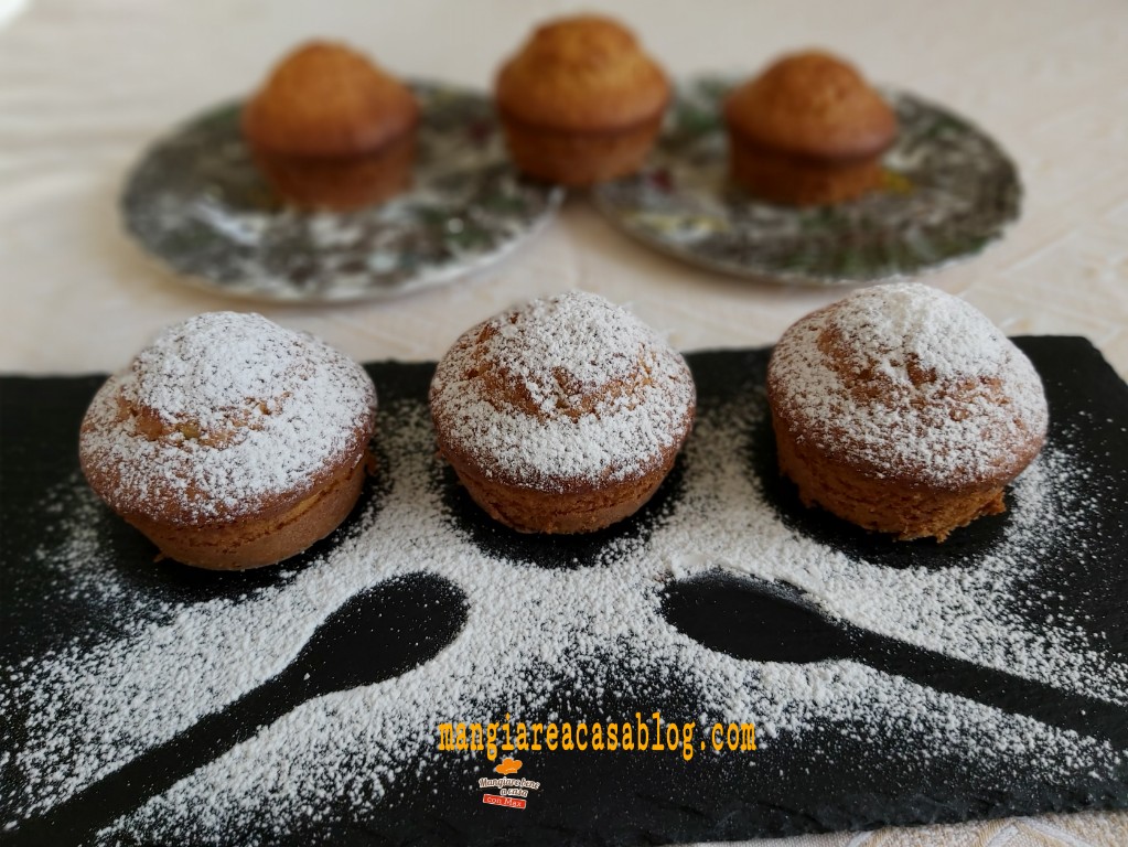 - Ungete gli stampini e infarinateli, riempiteli a 3/4 con il composto preparato e infornate a 180°C per circa 35 minuti. Trascorso il tempo di cottura infilate uno stuzzicadenti che all’estrazione dovrà risultare asciutto;