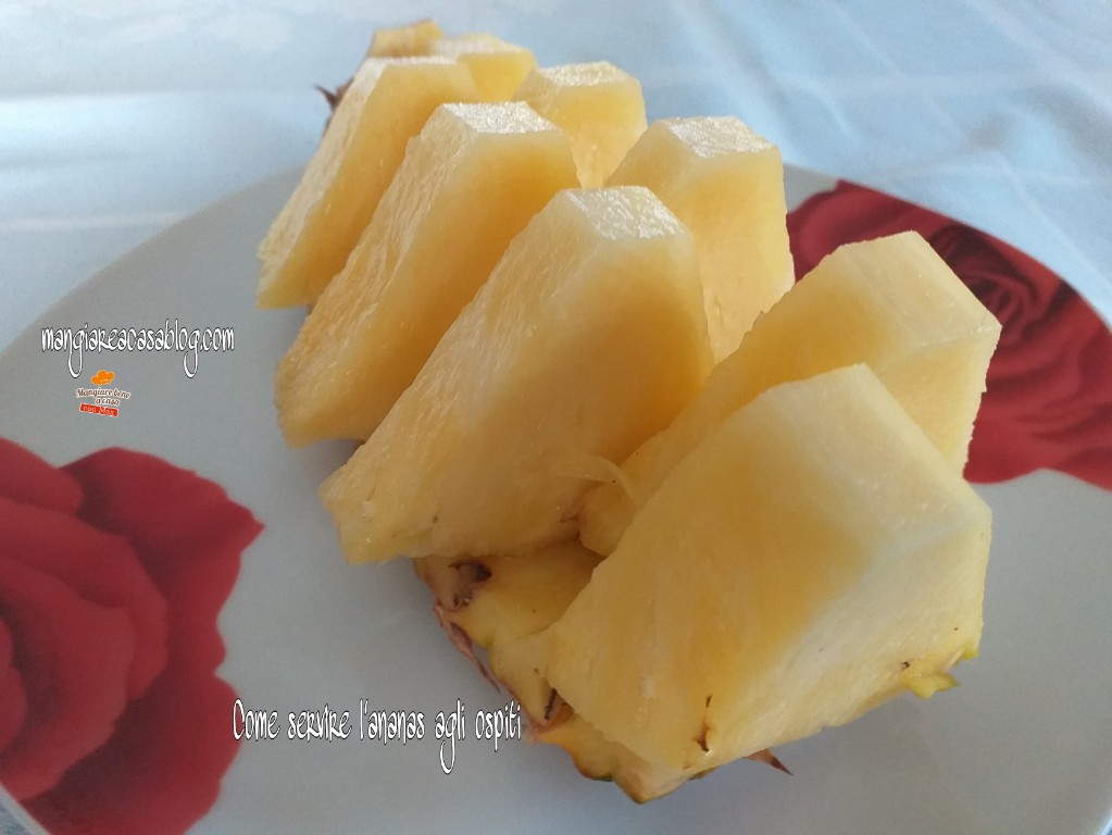 L'Ananas è un frutto esotico ricco di vitamina C. Per capire quando il frutto ha raggiunto la maturazione ideale, il colore della buccia dev'essere arancione sfumato e il profumo leggero caratteristico. L'Ananas non va tenuto a temperatura inferiore agli 8°C ma va servito fresco, magari aromatizzato con Maraschino o Rum. Nelle preparazioni più sofisticate l'Ananas viene associato a carni come pollame e alle insalate, in pasticceria viene utilizzato per la preparazione di torte, sorbetti e farciture dolci. 100g di Ananas forniscono circa 40 calorie.
