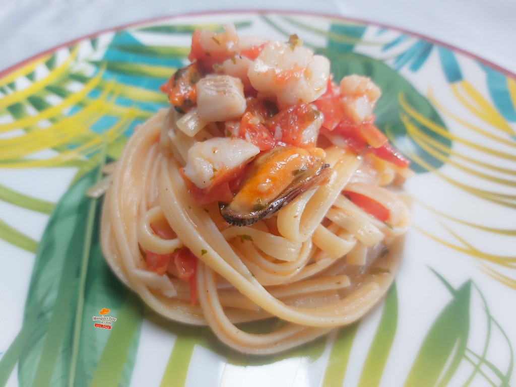 Cozze, vongole veraci, mazzancolle e pomodorini Pachino, una ricetta perfetta per condire la pasta all'uovo. Niente di meglio per una pietanza squisita di un pranzo domenicale molto goloso.