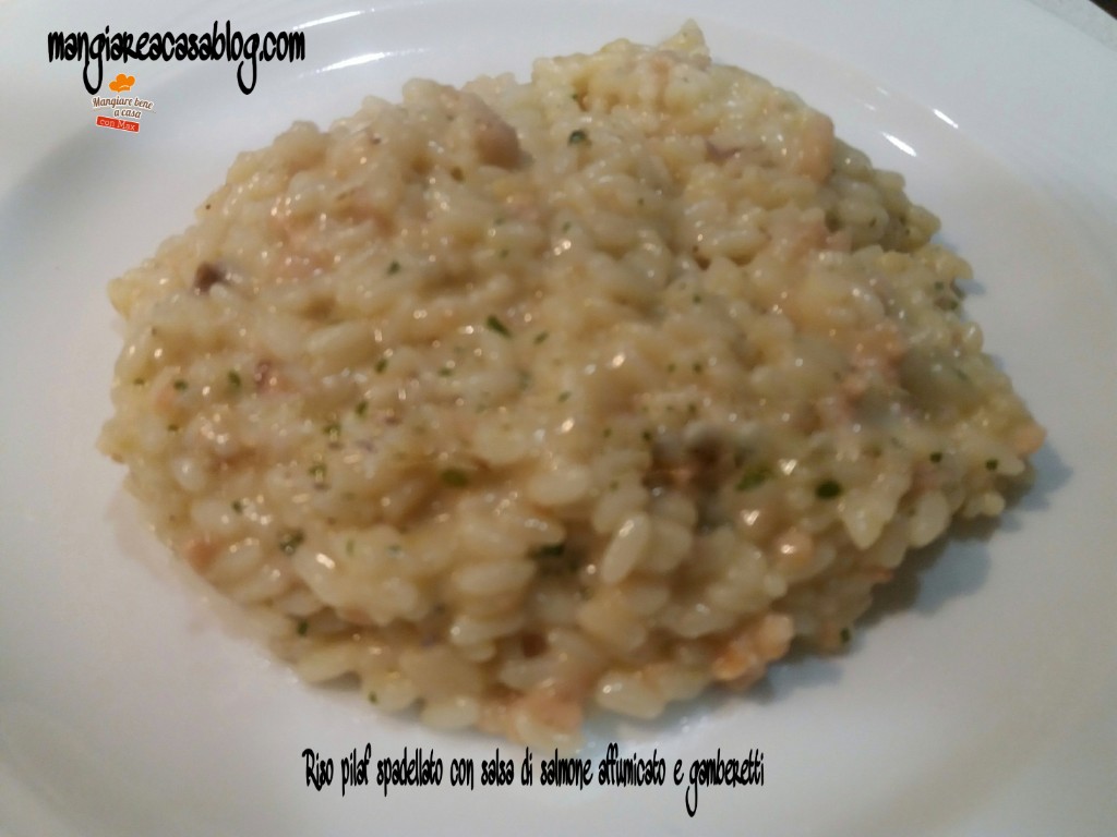 Riso pilaf spadellato con salsa di salmone affumicato e gamberetti