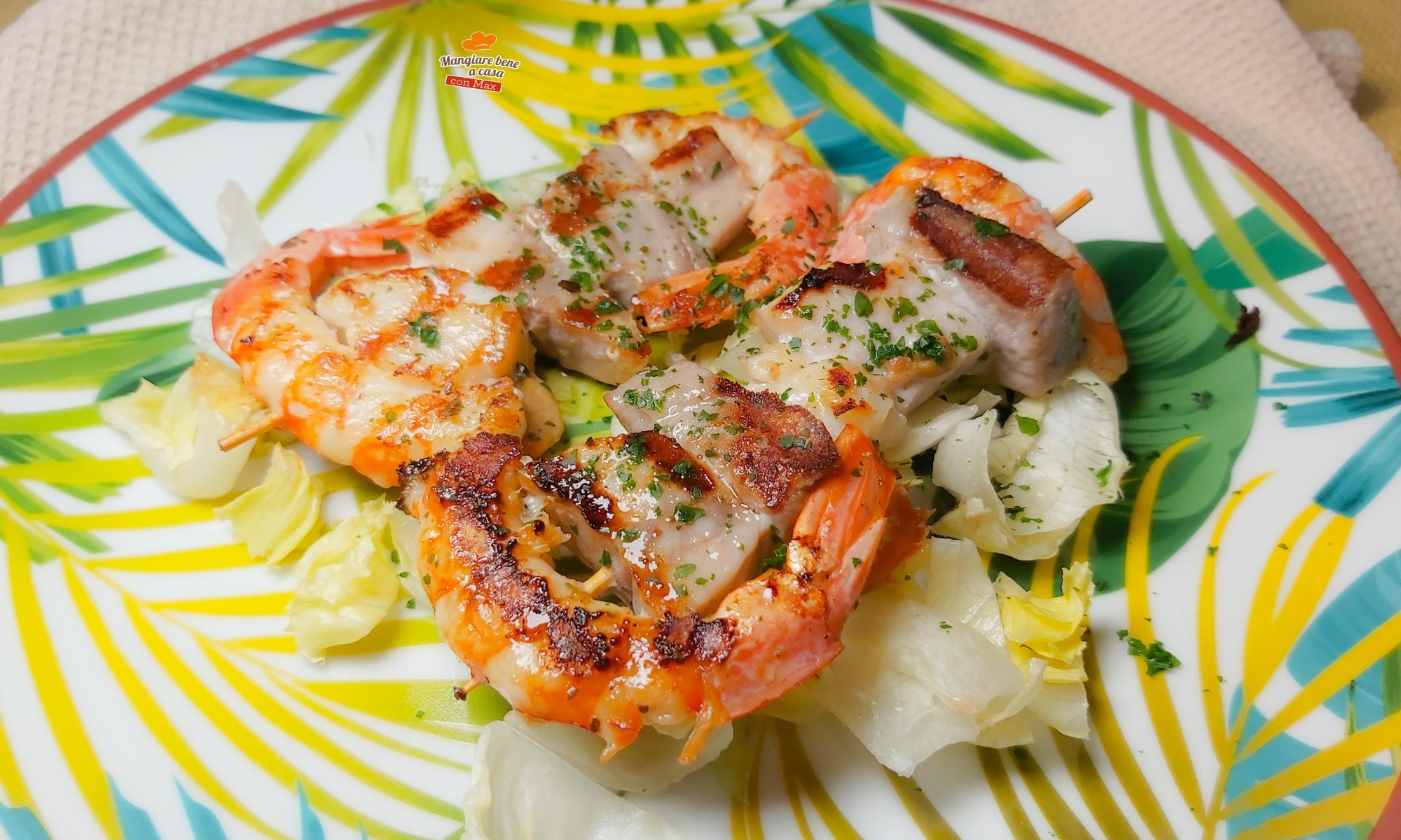 Adoro gli spiedini di pesce. Trovando del buon pesce sul banco del pescato fresco, oltre ai gamberoni, ho scelto del tonno e pesce spada affettati con uno spessore di 1 cm. e delle buonissime capesante con il frutto ancora attaccato al guscio: una vera meraviglia! Seguite la mia semplice ricetta.
